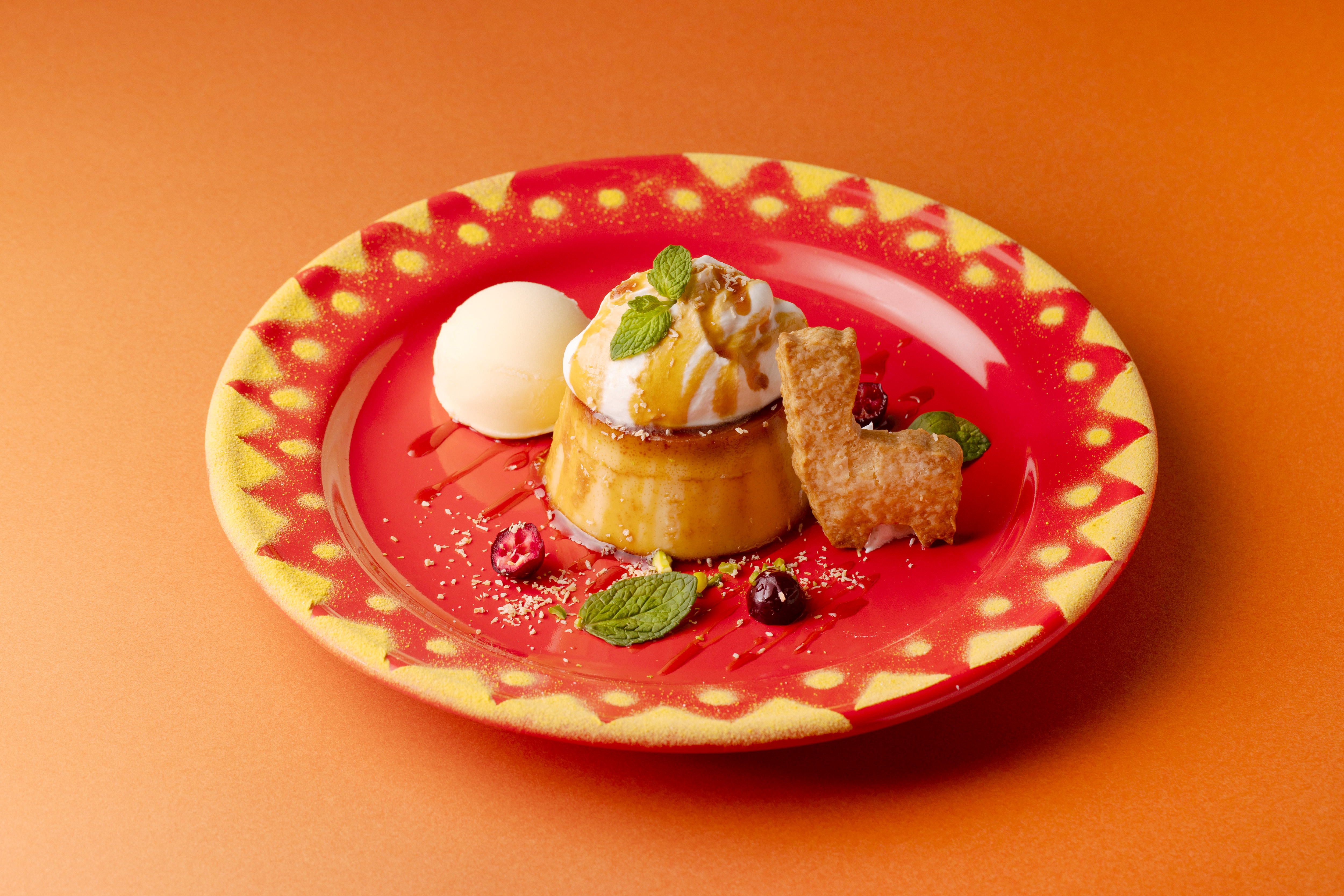 ペルーのプリンにココナッツファイン、ラマを模したクッキーとアイスクリームを飾りデザートプレートにしました。